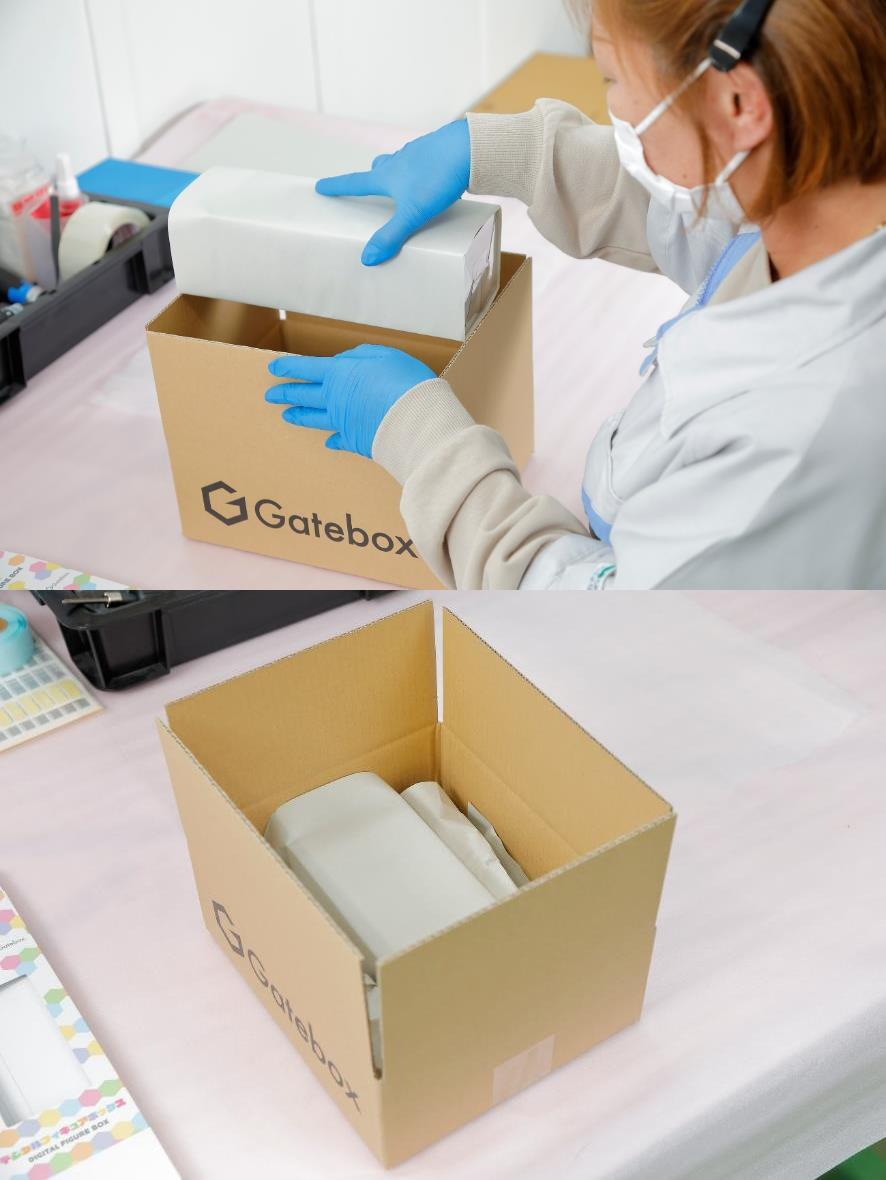 一つひとつの商品を手作業で丁寧に組み立て、梱包し、発送されるGatebox様のデジタルフィギュアボックス。