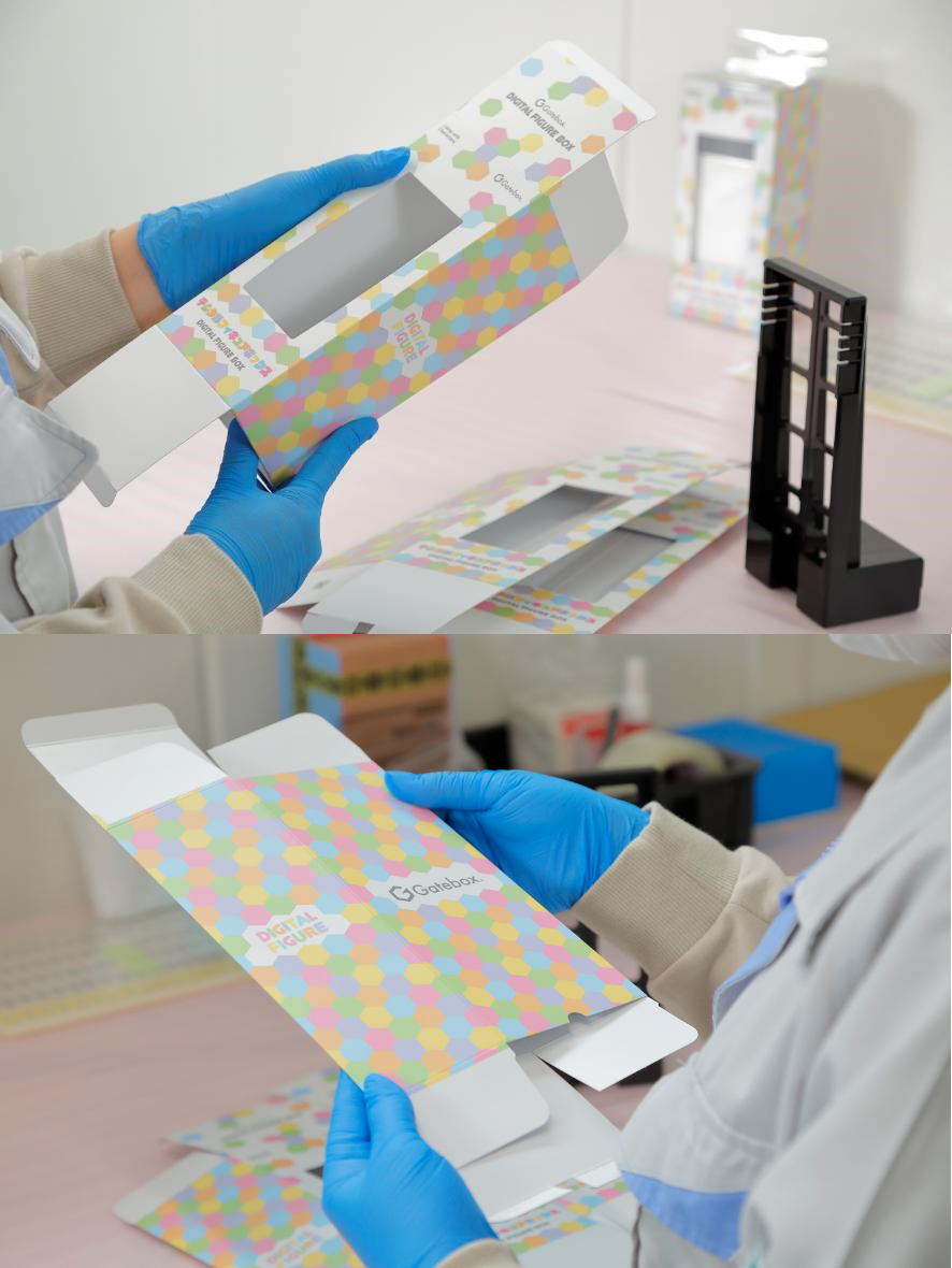 一つひとつの商品を手作業で丁寧に組み立て、梱包し、発送されるGatebox様のデジタルフィギュアボックス。